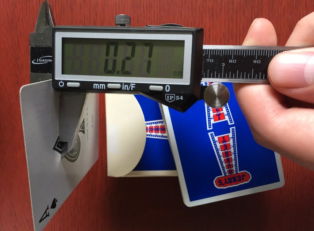 People say that Blue Seal cards feel thicker and last longer than the lower quality Black Seals, so I did what any curious person would do: measure that shit!