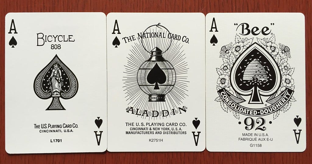 So what happened? From my knowledge, and the collective knowledge of other card enthusiasts, one of the main problems was new equipment. When the USPCC moved, the old printing presses and other machines were sold and not transferred to the new factory. With them being sold, they had a contract tied to the whole deal: that the old machines would never be used to print playing cards again.