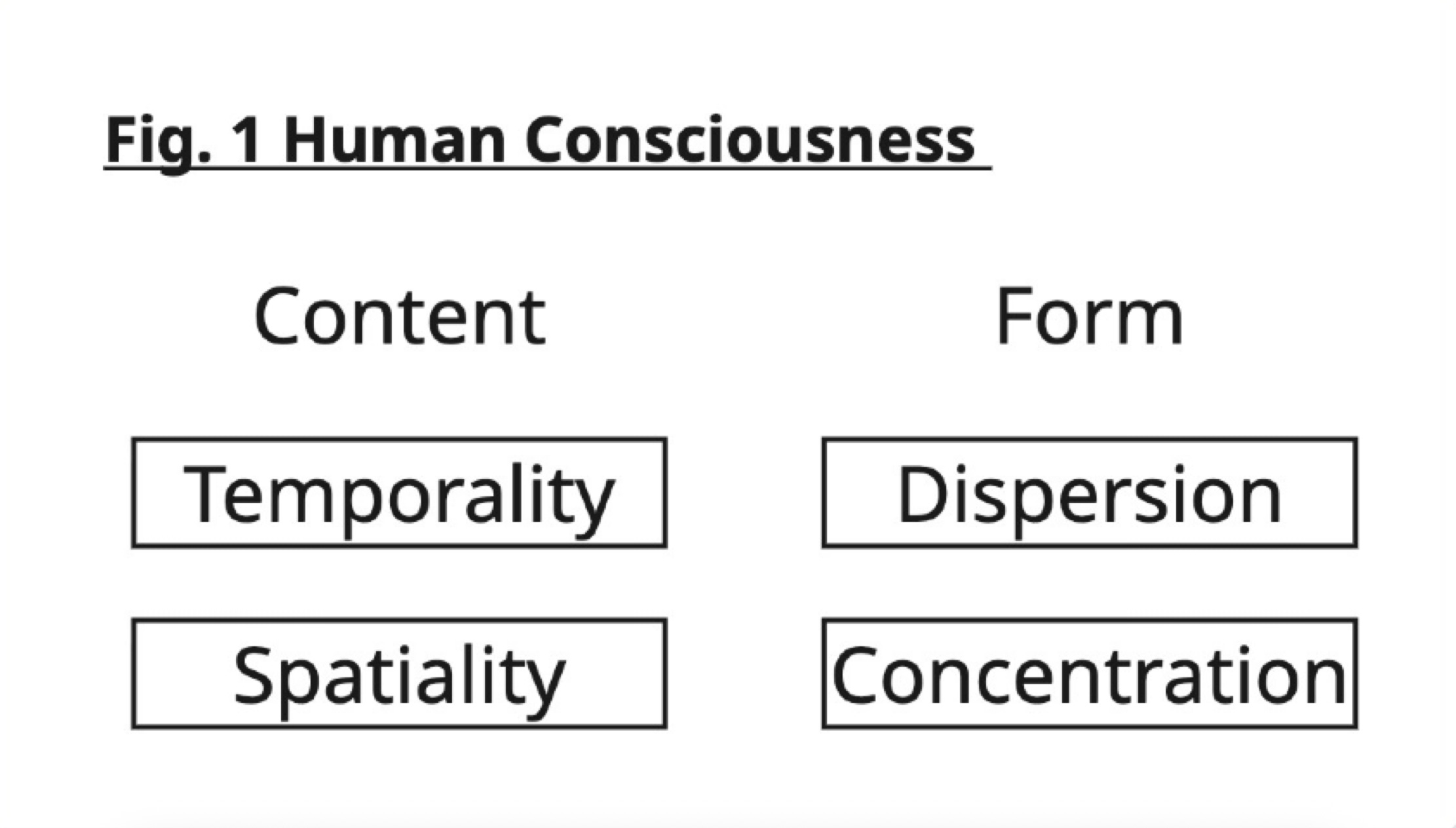 Also, we could think of consciousness as having content (T and S) and form (D and Cc). Figure 1 shows this perspective.