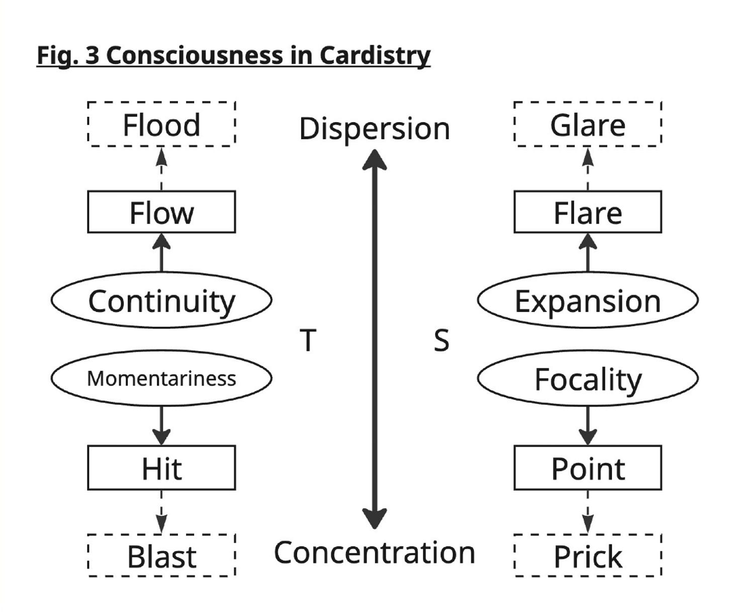 Each cardist will interpret these ideas differently. If asked to define these qualities — T/S/D/Cc or Ct/M/E/F — in distinct words, I could not do it perfectly. They are abstract qualities within the mind. To demonstrate them concretely, one must perform a specific move, saying, ‘For me, -ity/-ion/-ness has meaning like this’.
